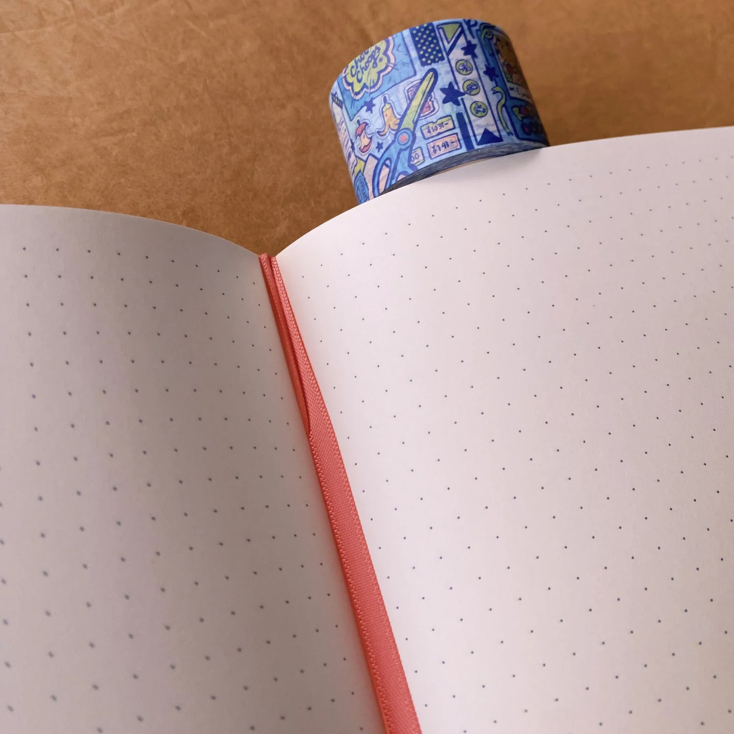 Notebook with leatherette cover, 196 pages of dot grid paper perfect for washi tape. Includes "In Case of Loss" page, ribbon bookmark to mark your place, elastic band to help keep notebook closed, and a pocket in the back to store your stickers and ephemera.