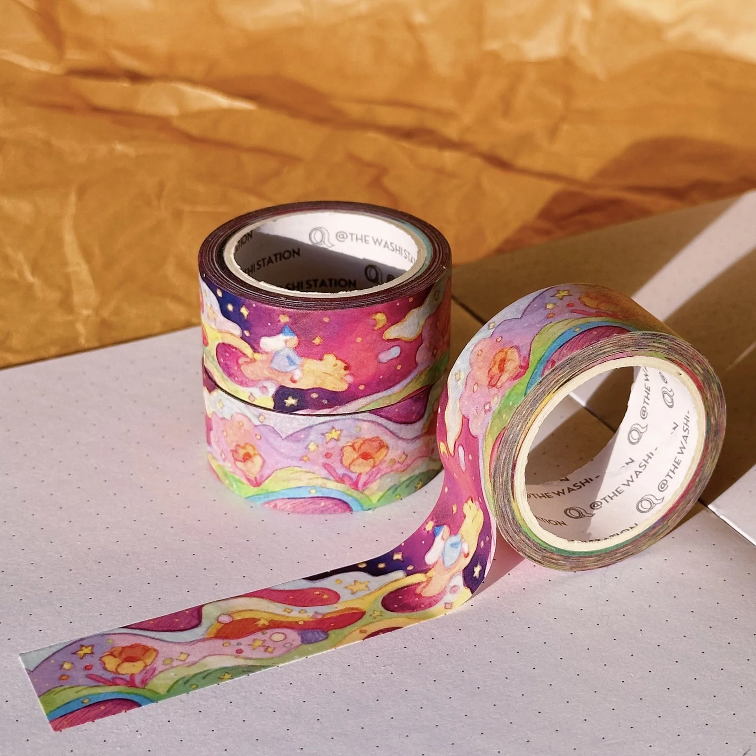 Printed paper tape, perfect for any time you’d use regular tape, only cuter! Hang up artwork, use it in planners, or for sealing and decorating mail. Easily peels off and leaves minimal residue on most surfaces. A perfect gift for the stationery lover in your life - or you!