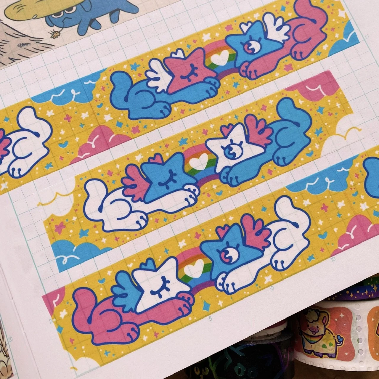 Printed paper tape, perfect for any time you’d use regular tape, only cuter! Hang up artwork, use it in planners, or for sealing and decorating mail. Easily peels off and leaves minimal residue on most surfaces. A perfect gift for the stationery lover in your life - or you!